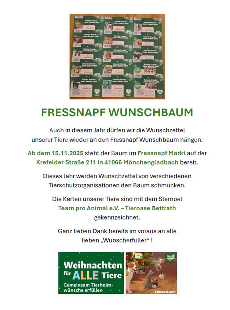 dem Tierschutzverein mit Aufgabenschwerpunkten in und um Mönchengladbach.