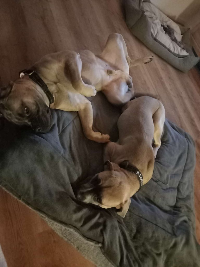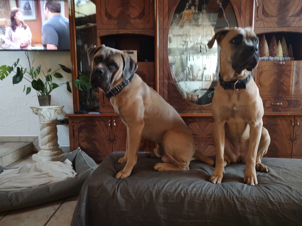 Bisher nicht an andere Tiere gewöhnt, sehr menschenfreundlich, kinderlieb und temperamentvoll. Kräftige Hunde, brauchen Auslauf und Training.