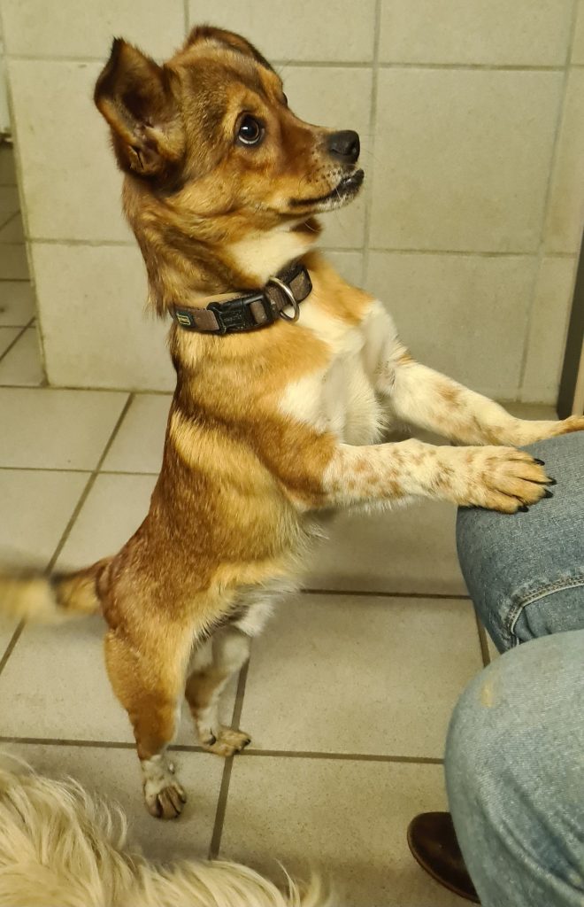 Er ist ein lustiger, agiler und verspielter Junghund der in unserer Hundegruppe gut zurecht kommt, mit groß und klein, Hündinnen und Rüden, jung und alt.