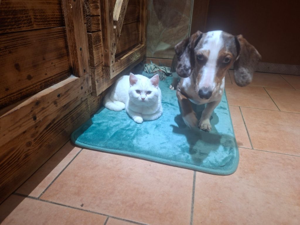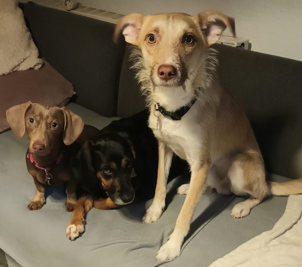 Die Zusammenführung mit den vorhandenen, hundeerfahrenen Katzen war gar kein Thema für Zottel, er ist einfach so ein lieber Schatz!