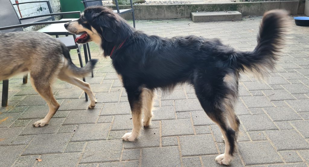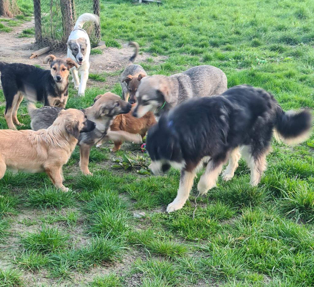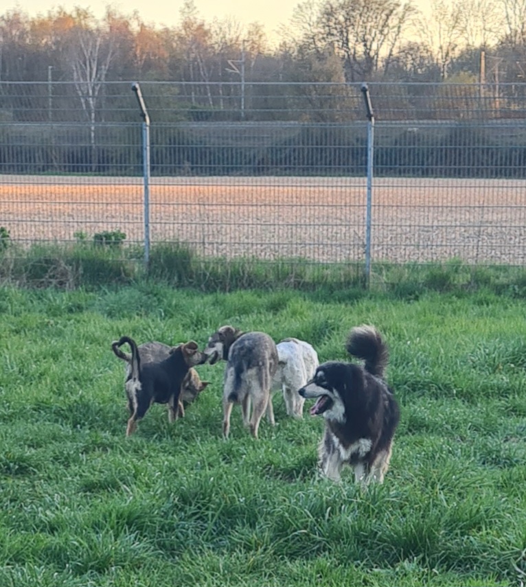 Sie kommt in unserer Hundegruppe gut zurecht, mit groß und klein, Hündinnen und Rüden, jung und alt. Die 4 neu angekommenen Welpen sind sofort fröhlich durch unseren Auslauf gesprungen, endlich Gras unter den Pfoten, auf großer Fläche laufen und toben – Lebensfreude pur!!! Da zerspringt einem das Herz beim zuschauen, einfach nur herrlich!