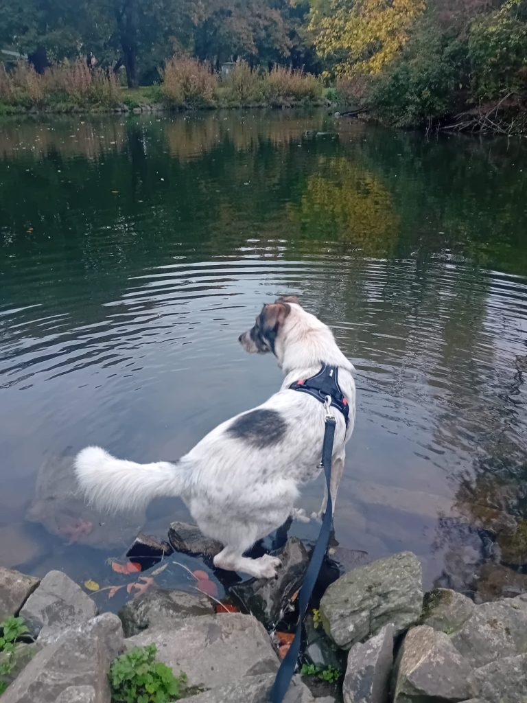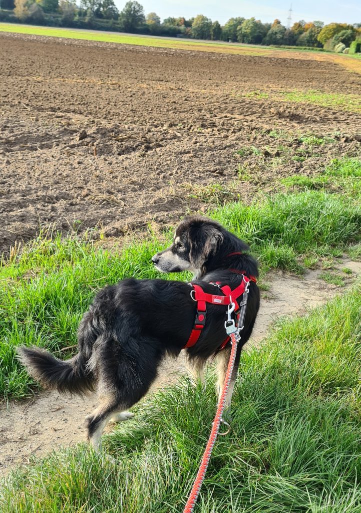 Nica geht sehr gut Gassi, Hundebegegnungen beim Spaziergang an der Leine stellen absolut kein Problem dar, sie interessiert sich nicht wirklich für ihre Artgenossen, ist bei Begegnungen freundlich, möchte dennoch lieber schnell weiter gehen und ihre Umwelt erkunden und erschnüffeln…