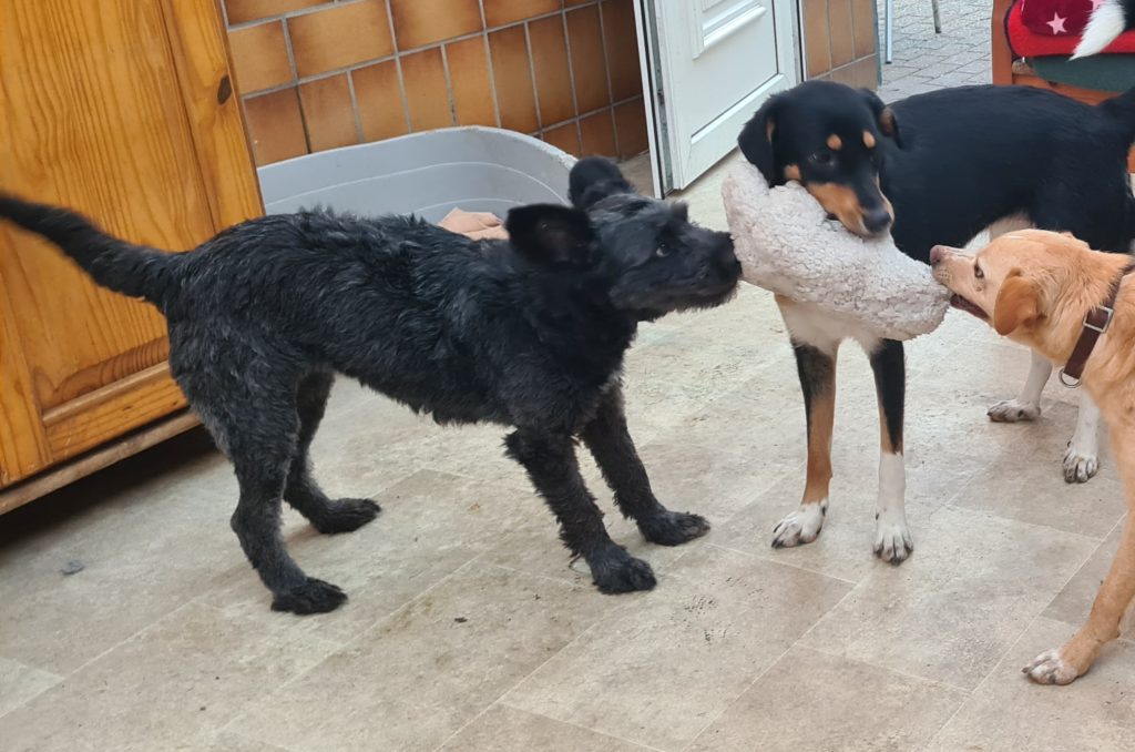 Loulou ist ein agiles und welpentypisch verspieltes Hundekind. In neuer Umgebung und mit fremden Menschen ist sie anfänglich ganz kurz etwas zurückhaltend, taut aber schnell auf und lässt sich dann gerne durchkuscheln.
