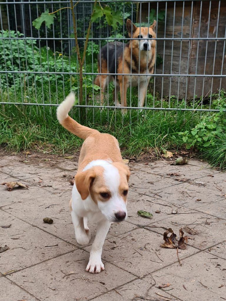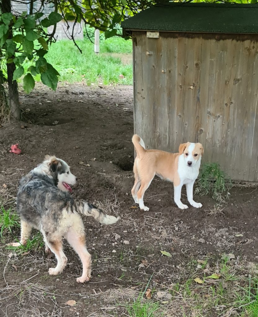 Sie kommt in unserer Hundegruppe gut zurecht, mit groß und klein, Hündinnen und Rüden, jung und alt. Die 4 neu angekommenen Welpen sind sofort fröhlich durch unseren Auslauf gesprungen, endlich Gras unter den Pfoten, auf großer Fläche laufen und toben – Lebensfreude pur!!! Da zerspringt einem das Herz beim zuschauen, einfach nur herrlich!