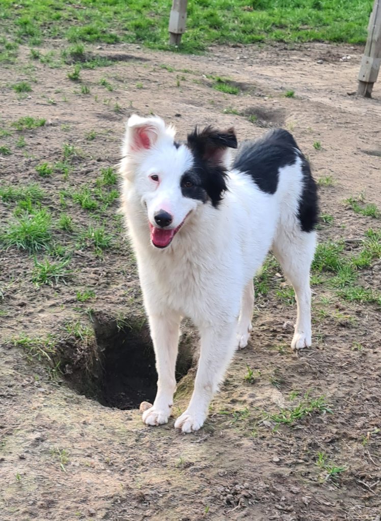 Sie kommt in unserer Hundegruppe sehr gut zurecht, egal ob groß oder klein, Hündinnen oder Rüden, jung oder alt. Sie liebt es mit den anderen Hunden zu spielen und zu toben.
