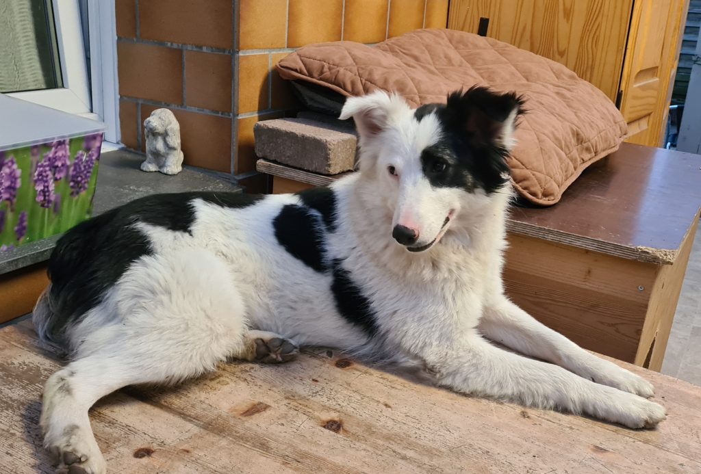 Gerne ein Zuhause mit Garten und „irgendwas“, wo sie erhöht drauf liegen darf und das Geschehen um sich herum beobachten kann, das liebt sie sehr 🙂